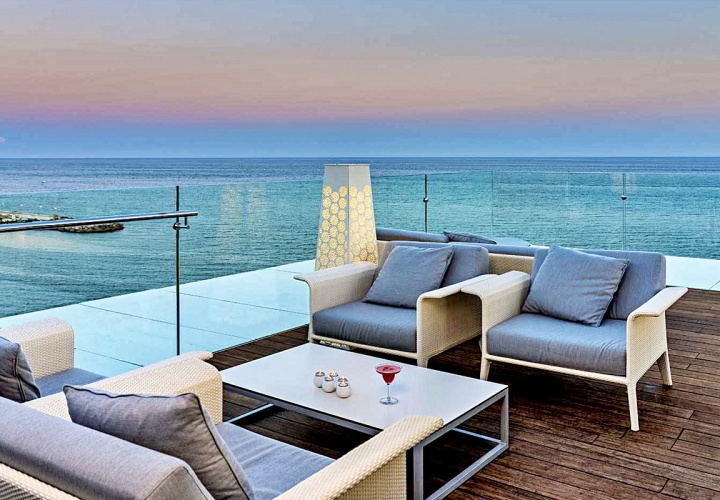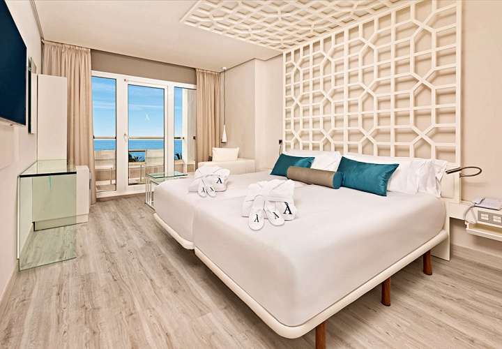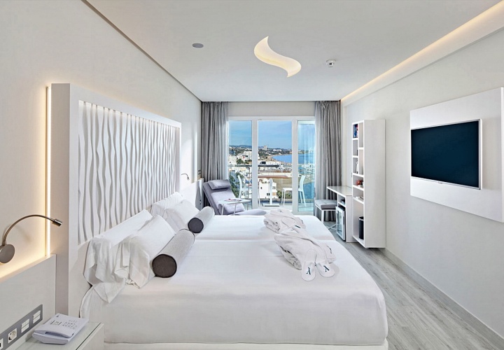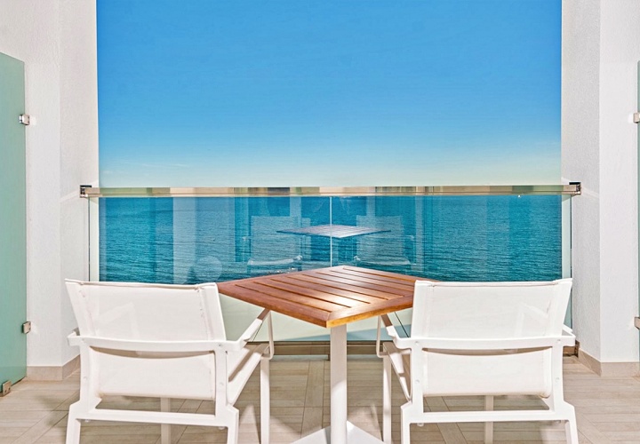 전체적으로 화이트와 베이지 톤의 모던한 디자인에 통유리창을 설치하여 지중해의 밝은 햇살이 객실 깊숙이 들어오도록 설계되었습니다.
