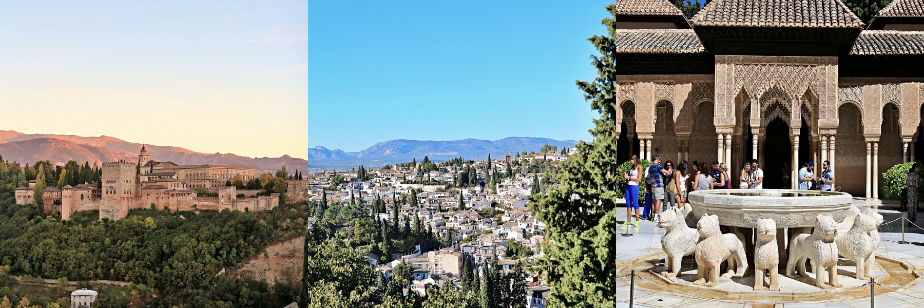 '수로의 중정'을 따라 길게 뻗은 분수와 계절마다 피어나는 꽃들이 조화를 이룹니다. 이슬람 조경 예술의 극치를 보여주며, 정원 높은 곳에서 바라보는 알람브라 성벽과 알바이신 지구의 전경은 그라나다 여행 중 가장 평온한 순간을 선사합니다.
